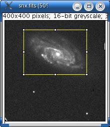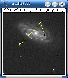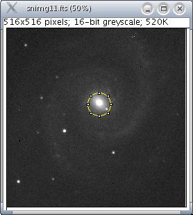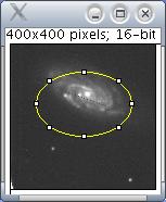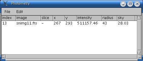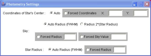 Photometry is the determination of the flux of light emitted by a star. It is calculated by correcting the integrated values of the pixels by the value of the sky background. This value can be related to the star intensity selection as shown. Click once to select a subregion of the image where the photometry will be applied.