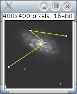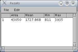 Based on the selection type, calculates and displays either area statistics, line lengths and angles. Area statistics are calculated if there is no selection or if a subregion of the image has been selected using one of the four toolsin the tool bar. Calculates line length and angle if a line selection has been created using one of the three line selection tools