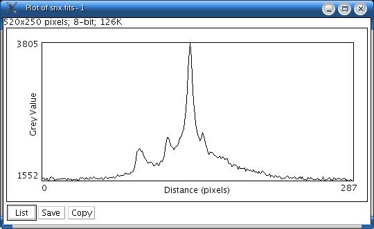Displays a two-dimensional graph of the intensities of pixels along a line within the image. The x-axis represents distance along the line and the y-axis is the pixel intensity.
